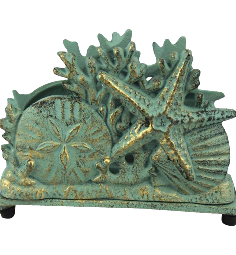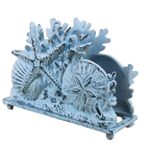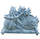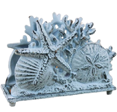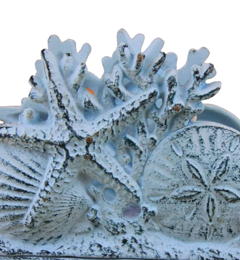 • Rustic Whitewashed Cast Iron Seashell Napkin Holder 7 Inch
